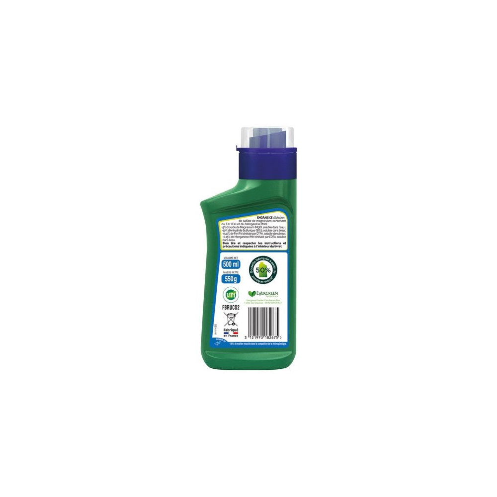 Combat trois carences responsables du brunissement des conifères grâce à un apport de Fer, Magnésium et Manganèse. Action préventive et curative. Liquide à diluer et à appliquer à l'arrosoir ou en pulvérisation.Avec bouchon doseur intégré à base de 50% de plastique recyclé post-consommation.