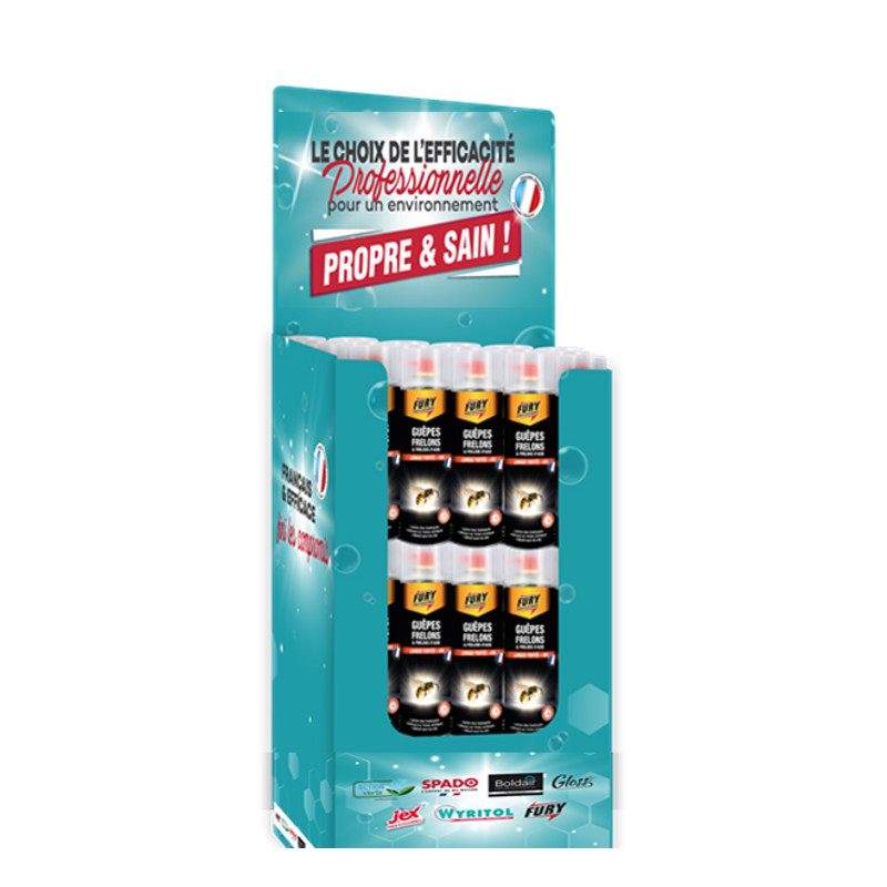 Pour lutter contre les nids de guêpes, frelons et frelons asiatiques avec une puissance maximale, la Box FURY de 40 aérosols 750 ml offre une autonomie renforcée pour des interventions complètes et durables. Son effet choc foudroyant détruit instantanément les colonies dès la première pulvérisation.