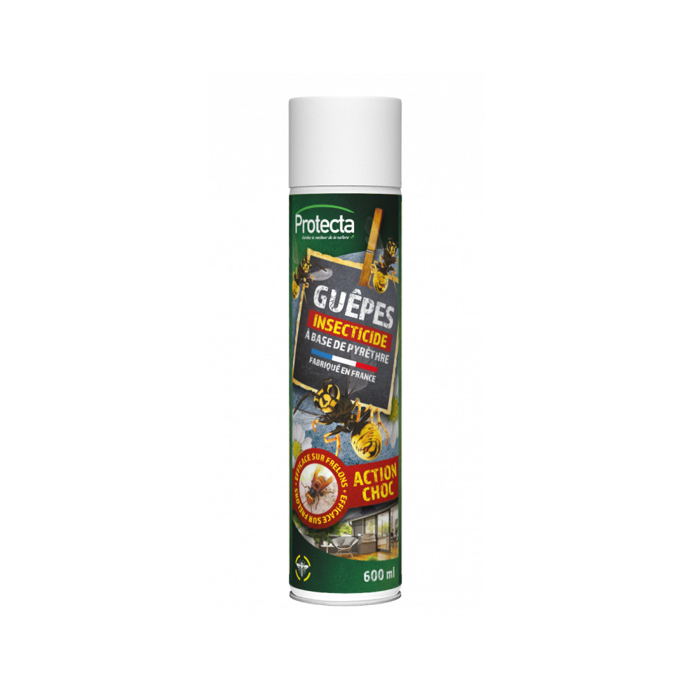 La formule de cet insecticide repose sur une base de pyrèthre végétal, un actif d'origine naturelle reconnu pour son efficacité foudroyante contre les hyménoptères. L'action est immédiate et radicale : les guêpes et frelons sont neutralisés instantanément au contact du produit. Le format 600 ml permet de traiter des nids de taille conséquente ou d'effectuer plusieurs interventions successives sans avoir à renouveler le stock immédiatement.