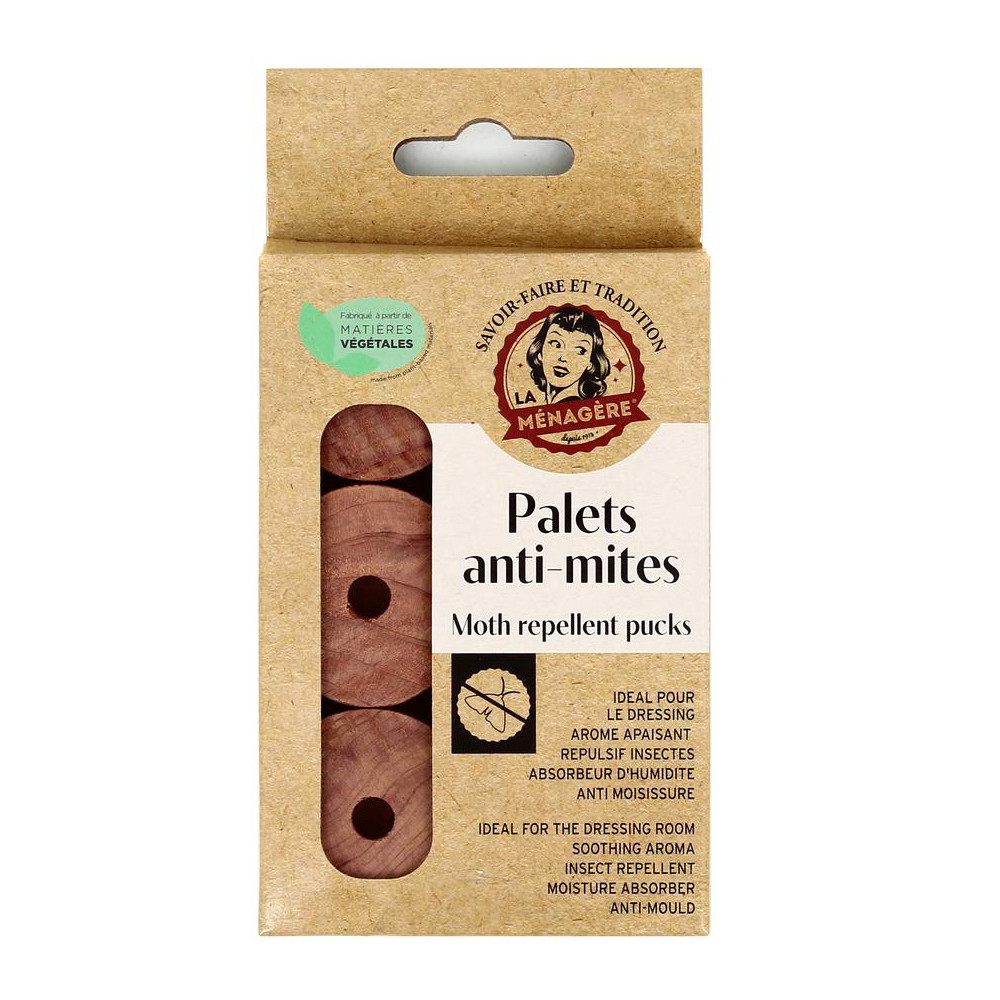 Protéger naturellement ses vêtements et textiles des mites sans recourir aux produits chimiques, c'est désormais possible avec les Palets Antimites en Cèdre La Ménagère. Fabriqués à partir de bois de cèdre 100 % végétal, ces 6 palets diffusent un arôme boisé et apaisant qui agit comme un répulsif naturel contre les mites des textiles, tout en absorbant l'humidité ambiante.