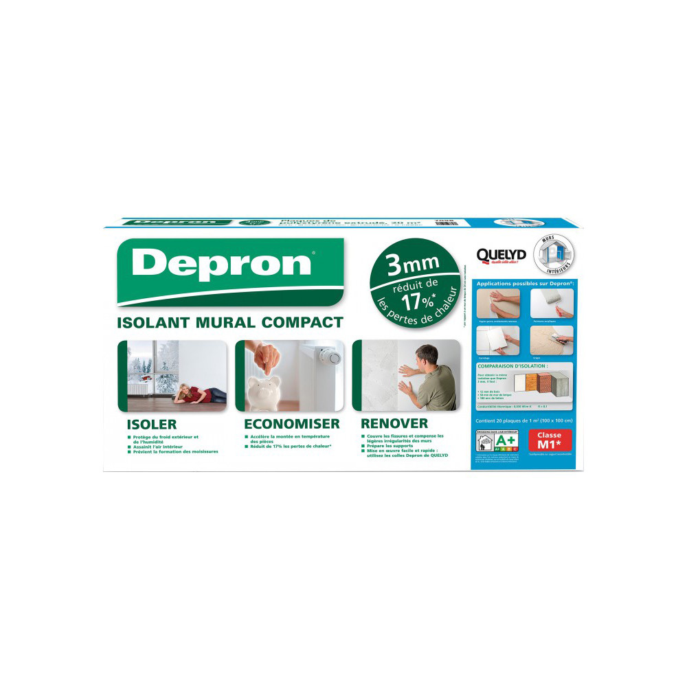 Le Dépron Quelyd en plaques de 3 mm est un isolant mural performant en polystyrène extrudé, proposé ici en lot de 10 plaques de 1 m² chacune, soit une surface totale de couverture de 10 m². Grâce à son faible encombrement, il s'intègre discrètement sous votre revêtement mural sans empiéter significativement sur le volume de la pièce, tout en apportant un vrai gain thermique.