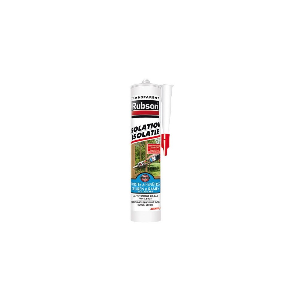 Le mastic isolation de 280 mL de coloris transparent de la marque RUBSON, composé d'élastomère silicone, permertant'isolation thermique et phonique entre ouvrants et dormants de fenêtres, portes, lucarnes Permet de compenser les déformations des menuiseries. Adhère parfaitement sur le bois, le métal, l'aluminium, le PVC. Etanche à l'air, l'eau, au froid, au bruit et aux poussières. Reste souple et résistant. Ne jaunit pas.