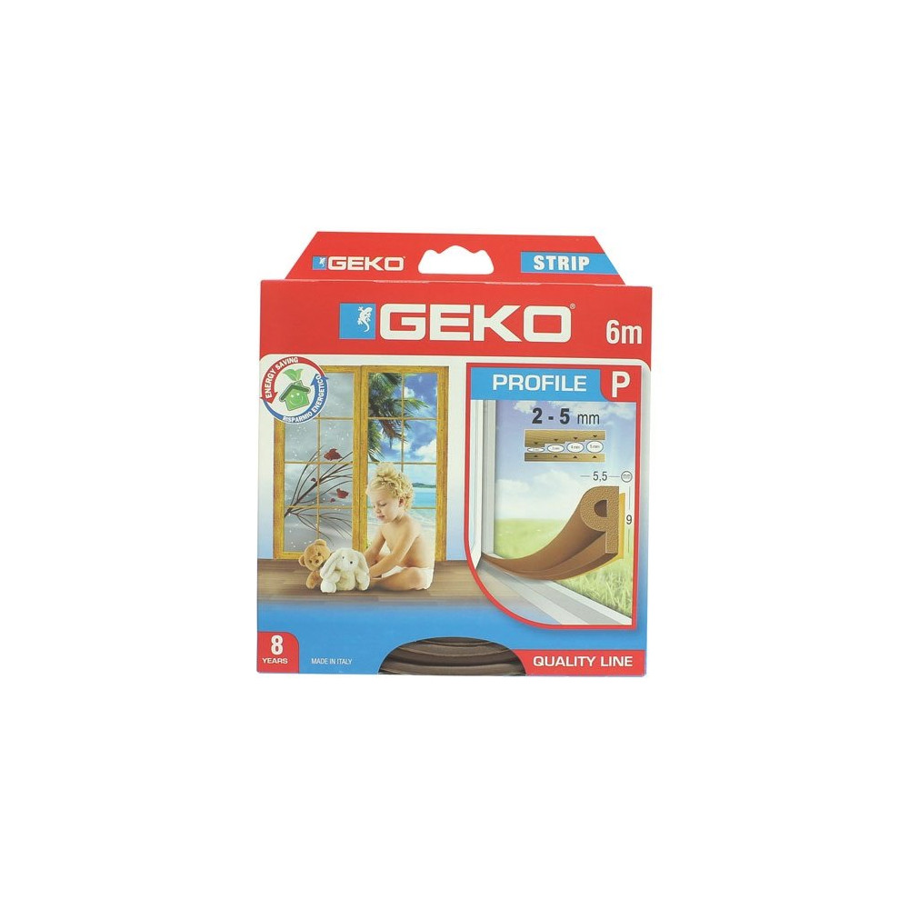 Le joint adhésif caoutchouc GEKO profil P, coloris marron, 9 mm x 6 m est taillé pour les menuiseries à jeu généreux, notamment les portes et fenêtres bois anciennes ou dont le cadre présente des légères déformations. Prévu pour des interstices de 3 à 5 mm, il comble efficacement les espaces là où les joints fins restent insuffisants.