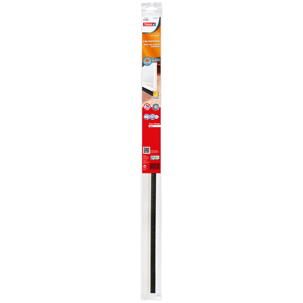 Les infiltrations d'air froid sous les portes sont souvent négligées alors qu'elles représentent une source importante de déperdition thermique. Le bas de porte adhésif blanc TESA spécial moquettes y remédie efficacement : conçu pour s'adapter aux sols à poil ras comme les moquettes, il protège contre les courants d'air, le froid et la poussière sans gêner l'ouverture et la fermeture de la porte.