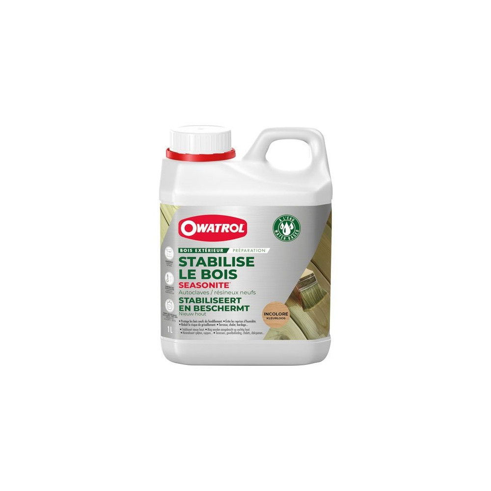 Le Seasonite d'Owatrol en bidon de 1 litre est un produit de protection spécialement développé pour les bois tendres neufs exposés aux conditions extérieures. Dès la pose, le bois est vulnérable au grisaillement, aux fissures et aux variations d'humidité. Seasonite intervient dès les premiers mois pour stabiliser les fibres du bois et le protéger des agressions climatiques pendant cette phase critique.
