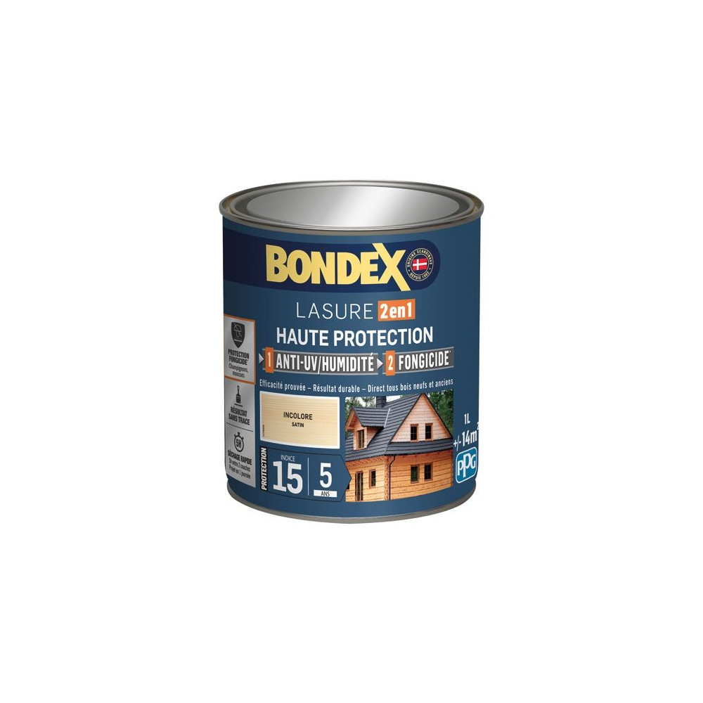 BONDEX - Bondex lasure 2en1 ind 15 5 ans 1l incolore