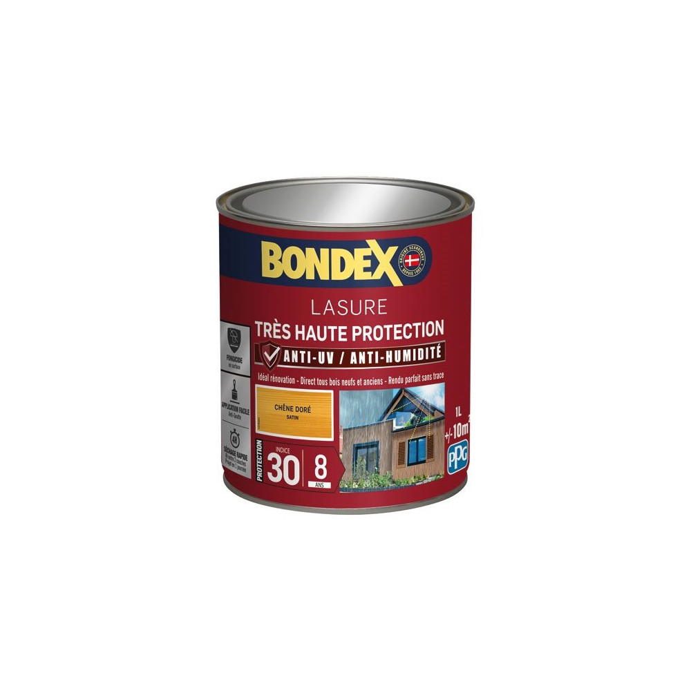 Sur les anciennes lasures encore adhérentes, un simple dépoussiérage et un léger ponçage suffisent avant application. Pour un résultat optimal sur bois neuf, prévoyez deux couches en suivant le sens du fil du bois. Le bidon d'1 litre est idéal pour les petits chantiers ou pour tester la teinte chêne doré avant un achat en plus grande quantité. Retrouvez toute la gamme BONDEX chez Brikoleur.