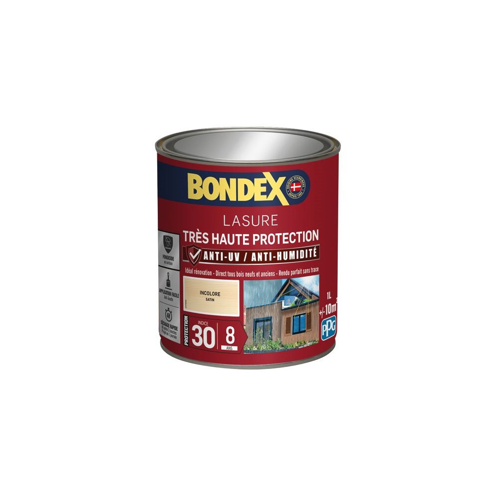 Vous souhaitez protéger vos boiseries extérieures tout en conservant leur aspect naturel brut ? La lasure BONDEX Ind 30 / 8 ans teinte incolore, en bidon d'1 litre, est la solution idéale. Sans apport de couleur, elle pénètre en profondeur dans le bois pour le protéger durablement des intempéries, de l'humidité et des UV, tout en laissant s'exprimer pleinement la teinte naturelle du bois.