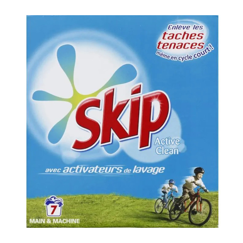 La lessive en poudre Skip Active Clean est formulée pour s'attaquer aux taches du quotidien les plus tenaces tout en ravivant l'éclat du linge blanc. En format 490 g pour 7 lavages, elle est idéale pour les petits besoins ponctuels ou pour tester la gamme avant d'adopter un grand format.