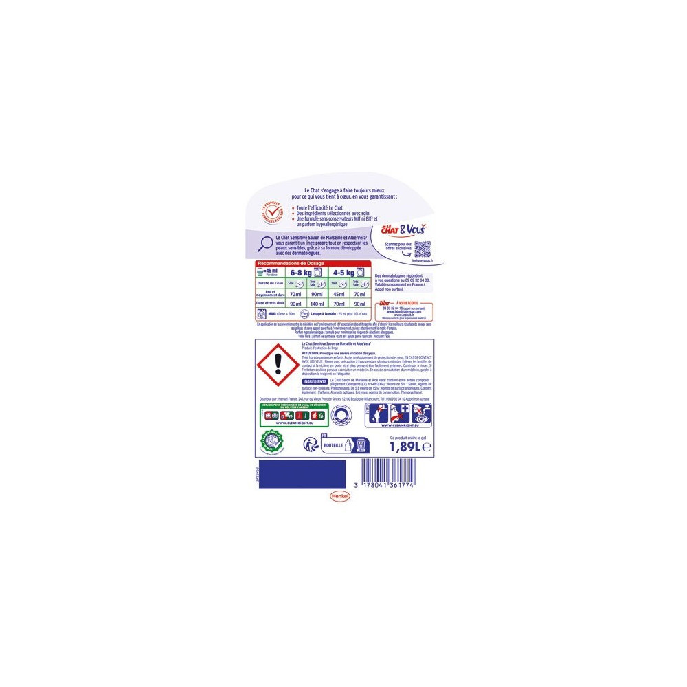 Pour les foyers dont l'un des membres souffre d'allergies ou de dermatites, il est recommandé de doser précisément la lessive selon le degré de salissure et la dureté de l'eau. Vous trouverez le Le Chat Sensitive Aloe Vera 1,89 L parmi la large sélection de produits d'entretien disponibles chez Brikoleur, pour prendre soin de votre linge comme de votre peau.