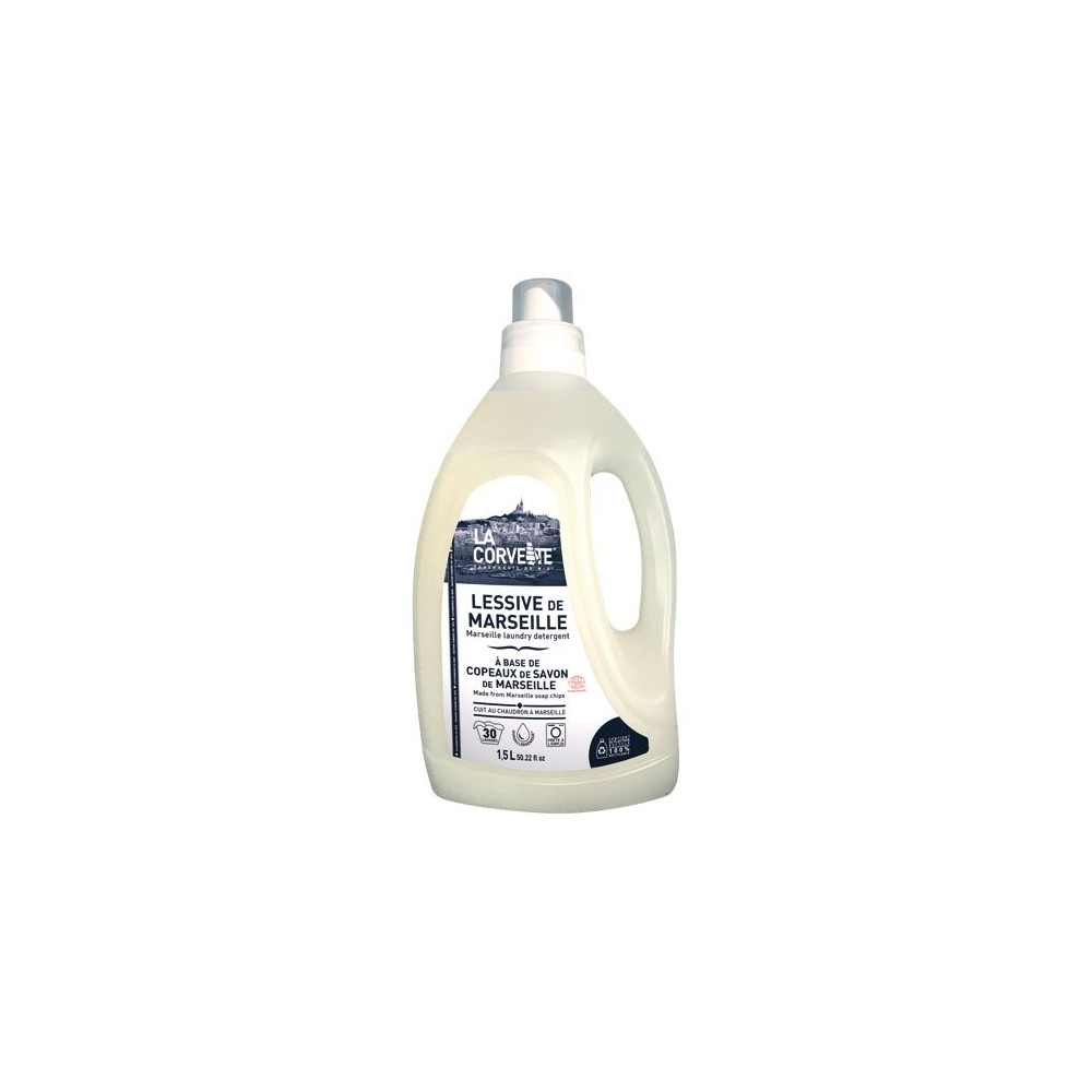 Pour laver le linge en douceur tout en respectant les peaux les plus délicates, la lessive savon de Marseille Ecocert LA CORVETTE en 1,5 litre s'impose comme une référence naturelle et hypoallergénique. Formulée à partir de copeaux authentiques de savon de Marseille, elle allie le savoir-faire traditionnel à une composition irréprochable sur le plan écologique.