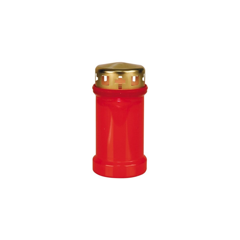 Robuste et adaptée aux conditions extérieures, cette veilleuse rouge de 130 mm est équipée d'un capuchon doré qui la met à l'abri de la pluie et du vent, assurant que la flamme reste protégée lors des jours de mauvais temps. Ses caractéristiques techniques en font un produit fiable et pratique :