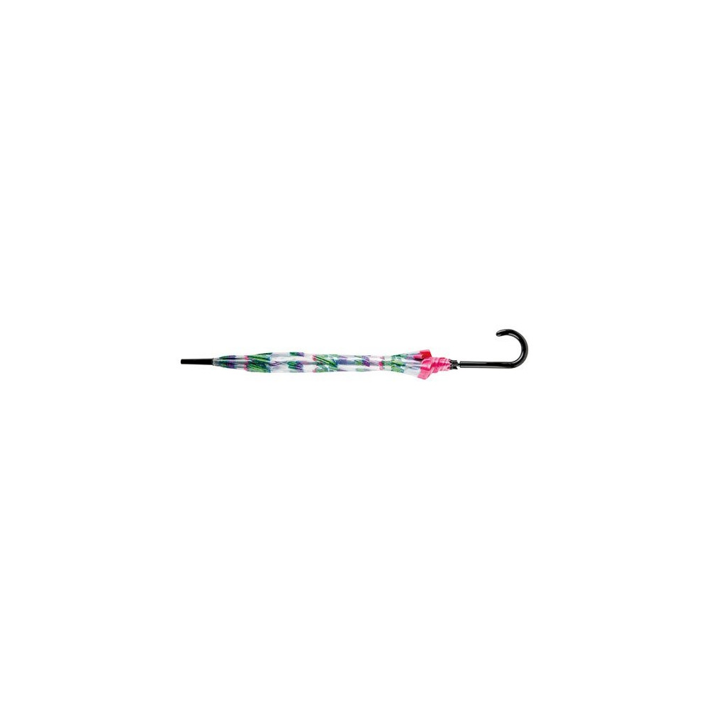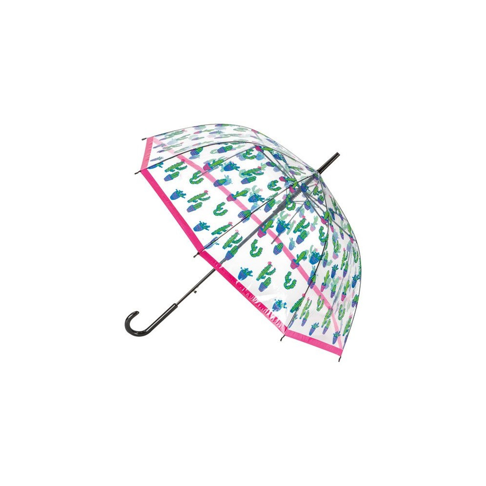Parapluie long automatique transparent avec motif cactus ou arc en ciel.