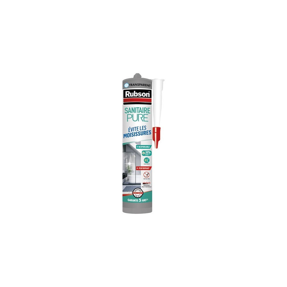 Le mastic pure sanitaire RUBSON en coloris transparent, format 280 ml, est la solution idéale pour des joints d'étanchéité discrets et invisibles dans les pièces d'eau. Grâce à sa formulation silicone enrichie d'antifongiques, il protège efficacement les zones humides contre le développement de moisissures tout en se fondant dans le décor.