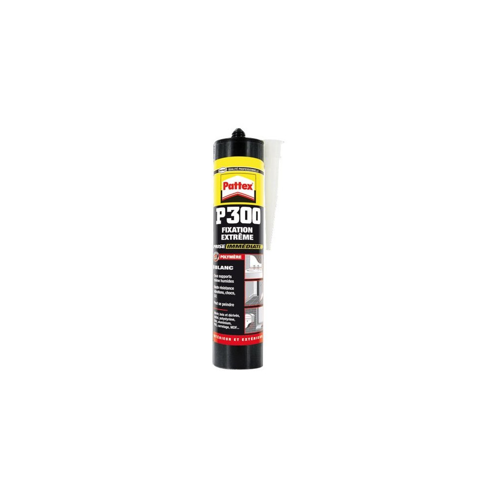 La colle fixation pl300 de coloris blanc de la marque PATTEX est à base de résines MS Polymères. Prise immédiate et fixation extrême. Peut se peindre. Résiste aux chocs, aux vibrations et aux UV. Quantité : 385 g. A utiliser en intérieur ou en extérieur. Pour tous supports, même humides. Pour bois et dérivés, carrelage, aluminium, MDF, polystyrène, PVC.