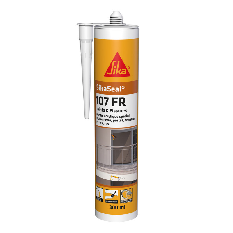 Avant toute application, éliminez les parties instables et dépoussiérez soigneusement les zones à traiter. Appliquez le SikaSeal 107 FR en cartouche 300ml avec un pistolet à mastic, puis lissez à l'outil humide. Attendez le séchage complet indiqué par le fabricant avant d'appliquer une peinture de finition pour un résultat homogène et esthétique.