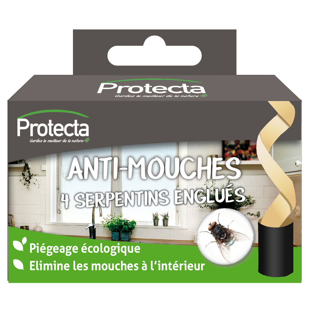 Les mouches envahissent votre intérieur ? Les serpentins englués anti-mouches PROTECTA, vendus en étui de 4, constituent une solution simple, économique et écologique pour en venir à bout sans spray ni insecticide. Ces rubans attrape-mouches en forme de tortillons captent les insectes volants dès qu'ils s'y posent, sans produit chimique diffusé dans l'air.