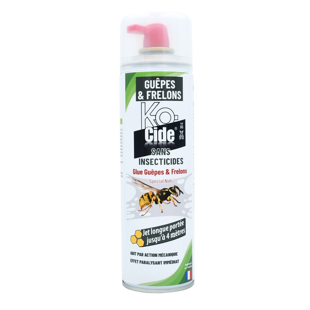 Foudroyant longue portée sans insecticide. Agit par action mécanique, effet paralysant immédiat, 2 secondes suffisent pour un nid de 35 cm de diamètre. Les insectes sont paralysés par la glue, ils ne peuvent plus voler, s'épuisent et meurent. Ne jamais utiliser en intérieur.