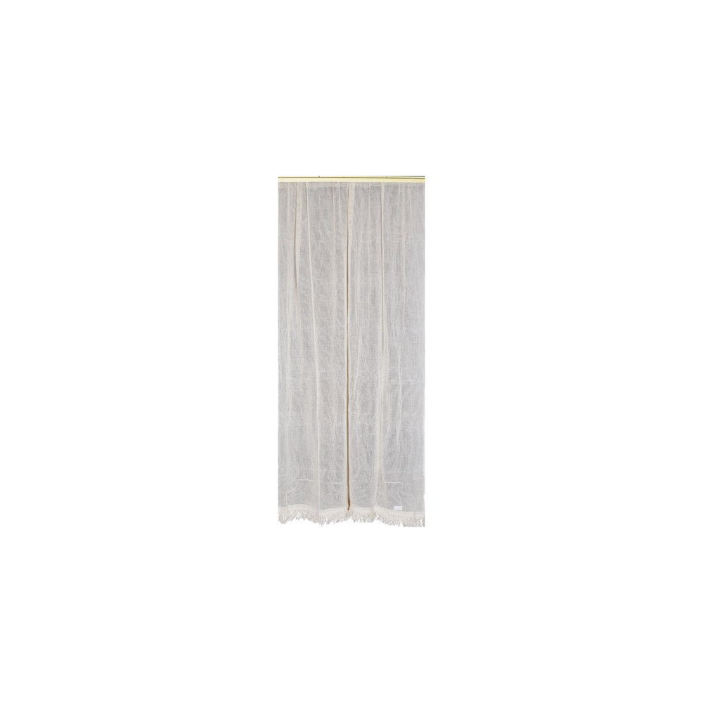 Son grand format 140 × 225 cm la rend particulièrement adaptée aux larges ouvertures, portes-fenêtres et baies vitrées. Le tissu en coton présente l'avantage d'être respirant, favorisant la circulation de l'air tout en bloquant le passage des moustiques et insectes. Le coloris écru naturel apporte une note chaleureuse et authentique à votre décoration intérieure, loin de l'aspect synthétique des modèles en plastique ou polyester.