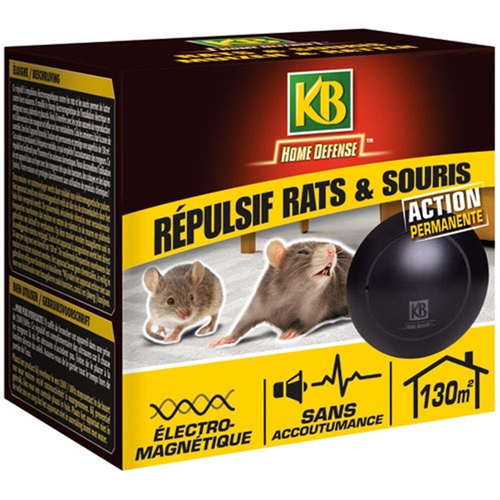 Éliminez discrètement et durablement les problèmes de rongeurs avec le répulsif électromagnétique KB HOME DEFENSE pour rats et souris, couvrant jusqu'à 130 m². Sans piège, sans poison et sans manipulation désagréable, cet appareil agit de manière invisible et continue pour rendre votre habitat hostile à ces nuisibles.