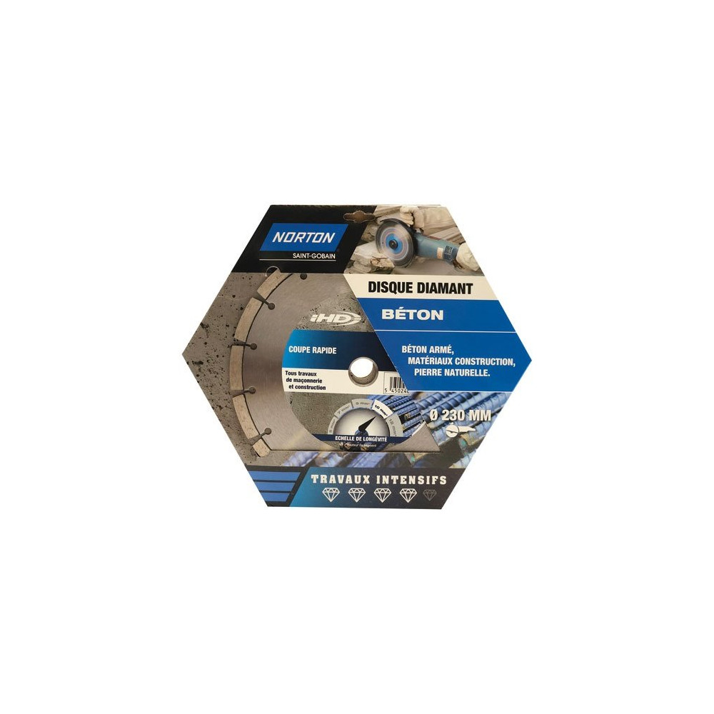 Pour les travaux de maçonnerie et de gros œuvre les plus exigeants, le disque diamant Norton 230 mm IHD construction intensive délivre des performances de coupe exceptionnelles sur les matériaux de construction les plus durs. Son grand diamètre de 230 mm permet d'attaquer des épaisseurs importantes en un minimum de passes, optimisant ainsi la productivité sur chantier.