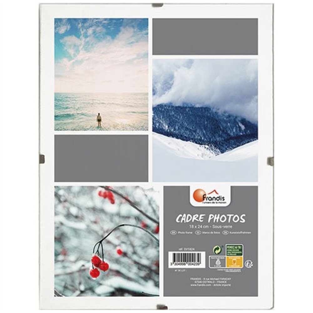 Pour donner une seconde vie à vos plus belles photos ou sublimer une illustration, le cadre sous verre 18x24 cm FRANDIS offre un format généreux qui attire le regard. Plus imposant que le classique 10x15, il permet de mettre en valeur des clichés de qualité, des affiches ou des œuvres graphiques avec un rendu soigné et épuré.