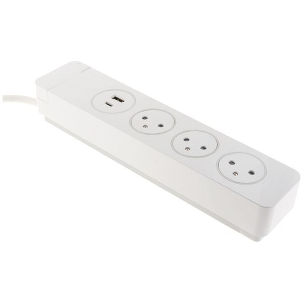 Ce bloc multiprise coloris blanc dispose de 3 prises 2P+T et de 2 ports USB intégrés pour charger vos appareils mobiles directement, sans adaptateur. Le câble de 1,5 mètre apporte la flexibilité nécessaire pour atteindre une prise murale dans la plupart des configurations de bureau ou de salon. Chaque prise bénéficie d'un interrupteur On/Off indépendant, permettant de couper l'alimentation d'un appareil spécifique sans débrancher les autres.
