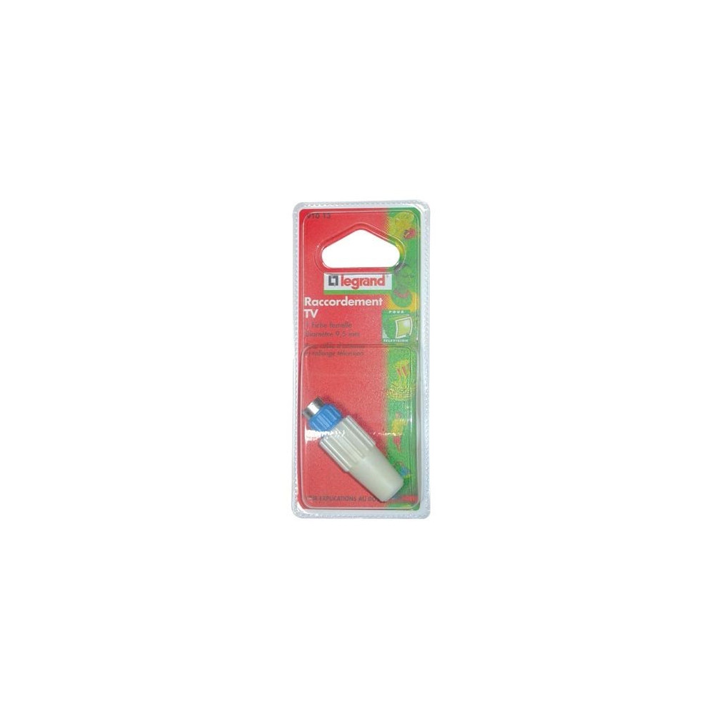 La fiche TV femelle Legrand de diamètre 9,52 mm est un connecteur coaxial de qualité professionnelle, conçu pour les installations audiovisuelles domestiques. Elle permet de raccorder facilement vos câbles d'antenne TV à vos équipements, en garantissant une transmission du signal fiable et sans perte.