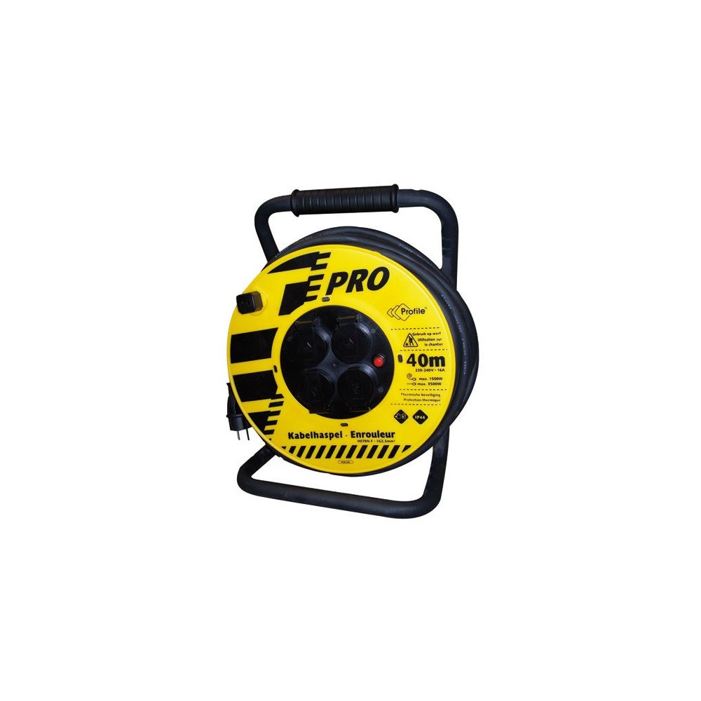 Conçu pour les professionnels et les chantiers exigeants, l'enrouleur de chantier PROFILE PCN468 déroule jusqu'à 40 mètres de câble néoprène 3G2,5 mm² pour alimenter vos outils électroportatifs même loin de la source d'alimentation. Sa robustesse et sa résistance en font un équipement de référence sur les sites de construction ou de rénovation.