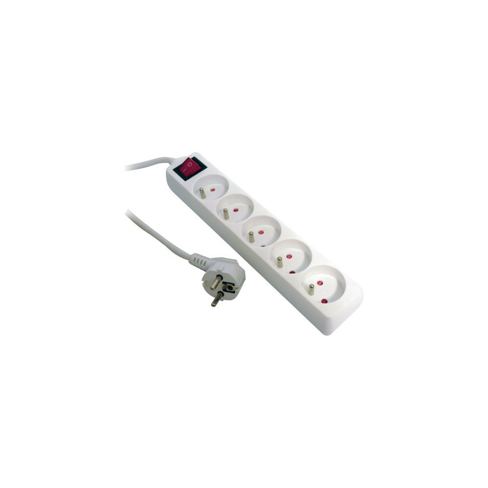 Ce bloc se distingue par ses 5 prises 2P+T (16A) avec prise de terre, offrant une grande capacité de branchement simultané. Il est équipé d'un interrupteur marche/arrêt permettant de couper l'alimentation de l'ensemble des prises en un geste, pratique pour économiser de l'énergie en mode veille. Le câble fourni est de type HO5VVF 3G1mm² d'une longueur de 1 mètre.