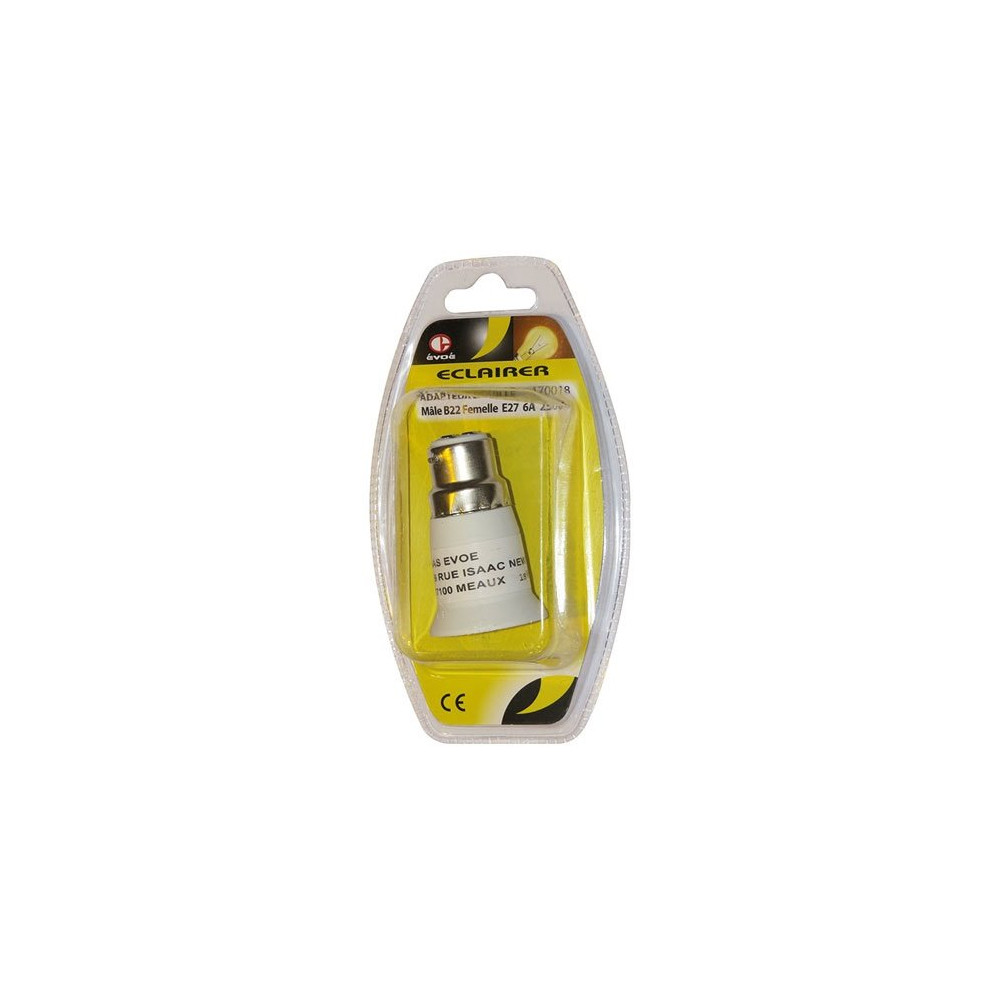 L'adaptateur de douille B22/E27 EVOE est la solution pratique et économique pour adapter une ampoule à culot à vis E27 sur une douille à baïonnette B22, sans aucun travail d'électricité. Ce petit accessoire discret évite le remplacement d'une douille existante et permet de profiter instantanément d'une ampoule de format différent sans frais d'installation.