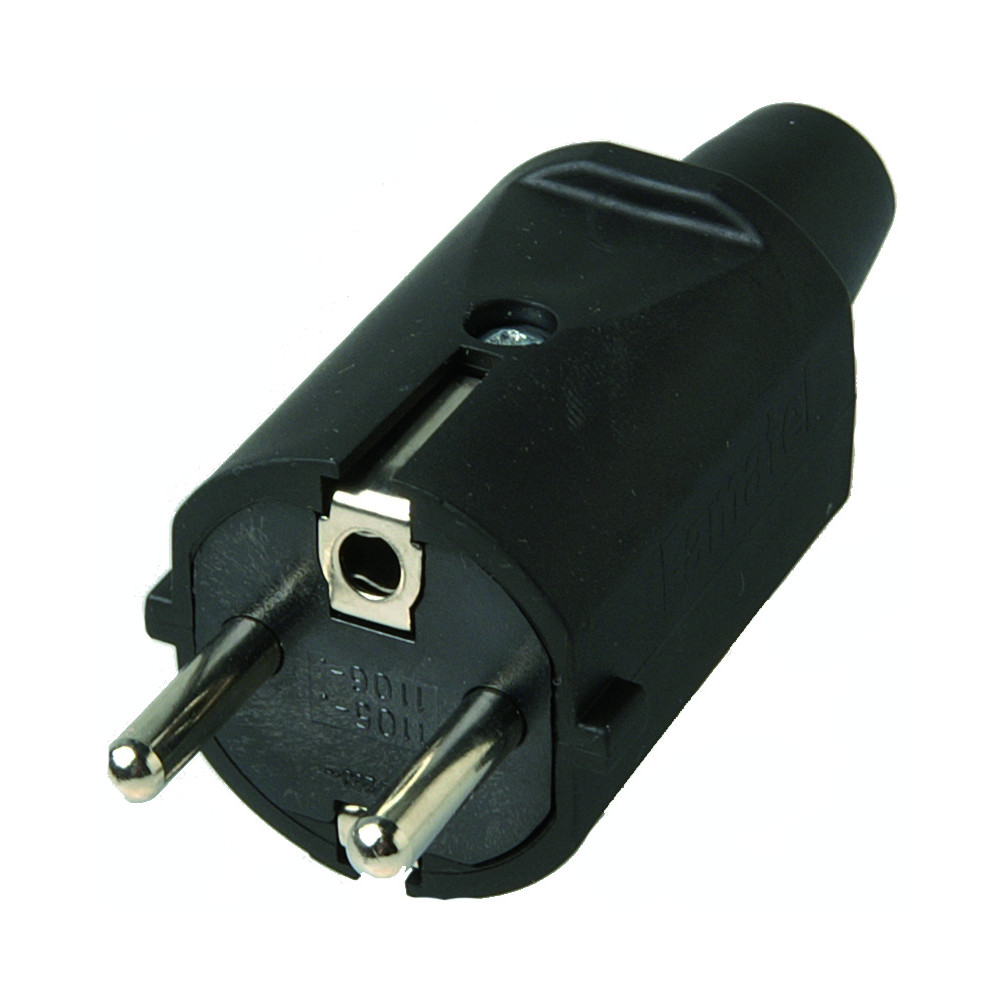 Fiche universelle bipolaire + terre en caoutchouc noir de la marque PROFILE : une prise robuste et fiable conçue pour les usages intensifs, aussi bien en atelier qu'en chantier. Sa gaine en caoutchouc souple et résistant lui confère une excellente tenue aux chocs, aux écrasements et aux variations de température, là où les fiches plastique standard montrent leurs limites.