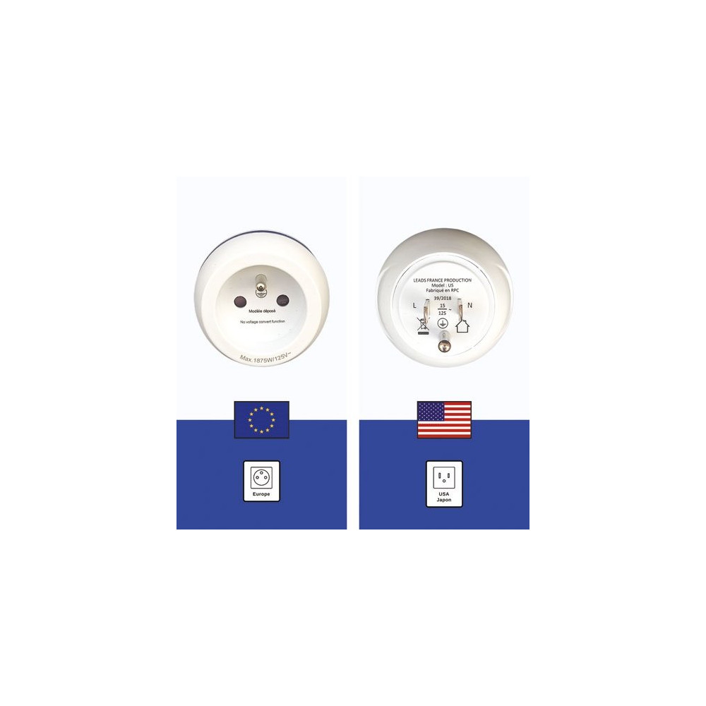 Partez aux États-Unis l'esprit tranquille grâce à l'adaptateur de voyage France vers USA de LTE Design. Ce petit accessoire indispensable permet de brancher vos appareils électriques français sur les prises américaines de type A, dont la configuration à deux fiches plates est incompatible avec nos prises européennes rondes. Compact et léger, il trouve facilement sa place dans n'importe quel bagage à main.