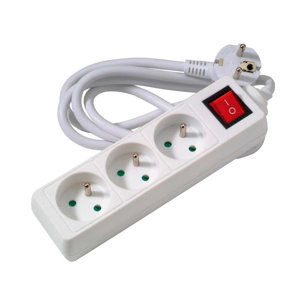 PROFILE - Multiprise Bloc de 3 Prises + Interrupteur Blanc 1.5m