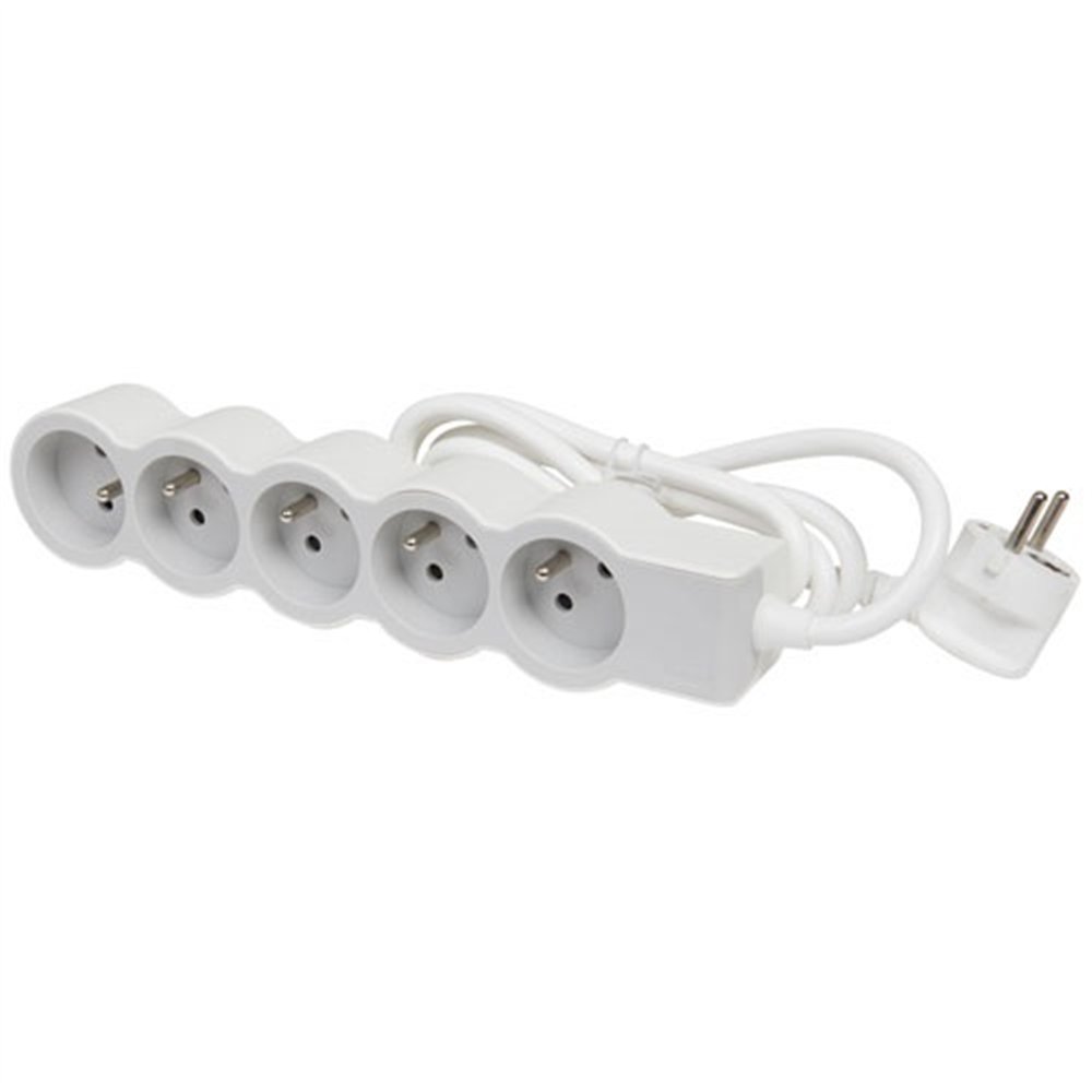 La multiprise Legrand 5 prises 2P+T en blanc et gris associe un design épuré à une fonctionnalité quotidienne indispensable. Son profil extra-plat et sa finition arrondie blanc/gris clair lui permettent de s'intégrer discrètement dans n'importe quel intérieur, que ce soit dans un bureau, un salon ou une chambre.