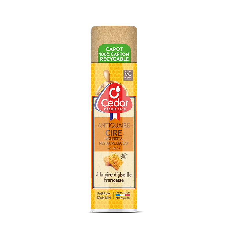 La Cire d'Abeille Nourrissante Antiquaire O CEDAR en aérosol de 300 ml est une solution complète pour redonner vie aux meubles et parquets en bois. Enrichie en cire d'abeille française naturelle, sa formule exclusive nettoie en douceur, nourrit en profondeur et protège durablement toutes les essences de bois, des plus claires aux plus foncées.