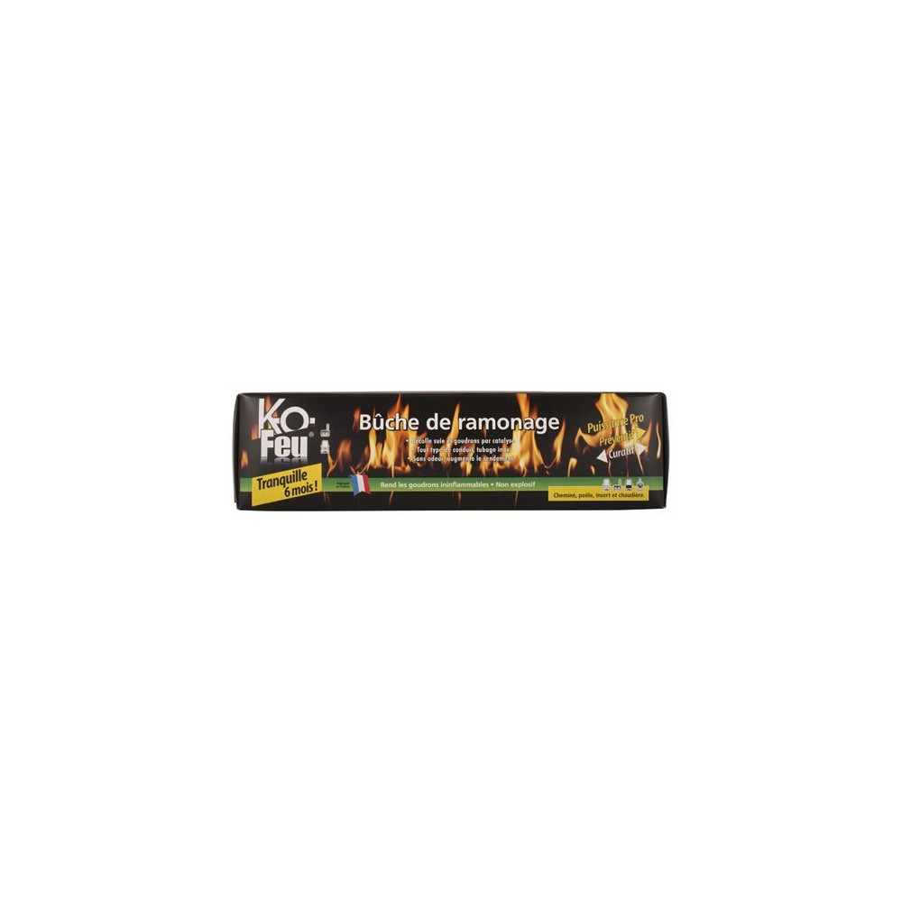 Entretenir son conduit de cheminée entre deux ramonages mécaniques, c'est simple avec la bûche de ramonage chimique KOFEU de 1,2 kg. Jetée directement dans le foyer lors d'une flambée normale, elle se consume en dégageant des agents actifs qui ramollissent et décollent les dépôts de suie et de goudron incrustés sur les parois du conduit.