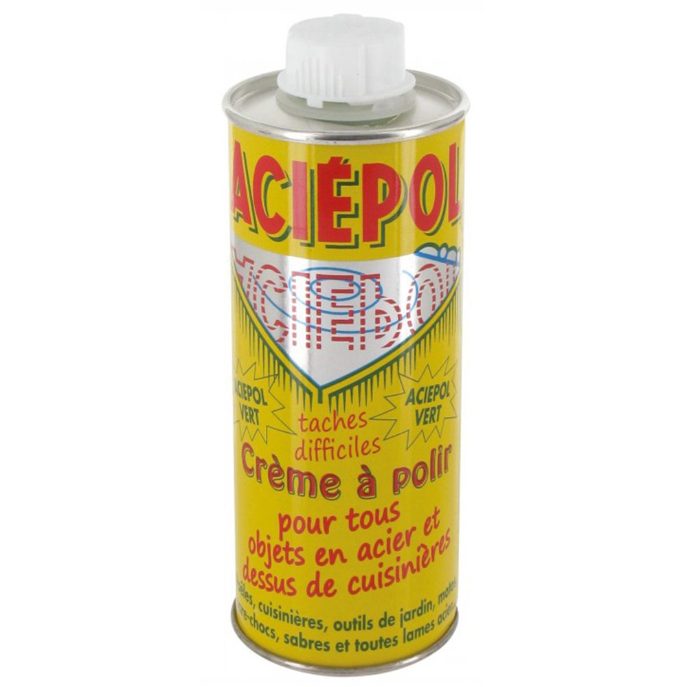 La crème à polir Aciepol n°2 en coloris vert est la référence incontournable pour redonner vie aux surfaces en acier encrassées ou ternies. Conditionnée en flacon de 250 ml, cette crème nettoyante à action abrasive douce a été spécialement formulée pour l'entretien et la rénovation des objets en acier ainsi que des dessus de cuisinières, plaques de cuisson et appareils de chauffage.
