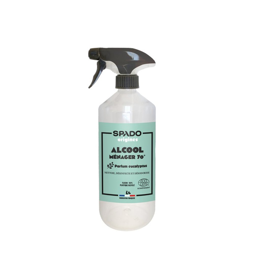 Désinfecte et nettoie dégraisse et élimine les mauvaises odeurs, détache et fait briller. Convient pour l entretien de la salle de bains et la cuisine. Large spectre de désinfection.Concentration à 70° et formulé avec de l alcool de betterave. bactéricide, levuricide et virucide. Parfum eucalyptus. Fabrication française.