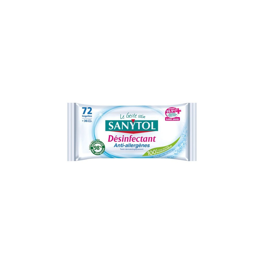 Pour les personnes sensibles aux allergènes domestiques, les Lingettes antiallergènes désinfectantes SANYTOL en pack de 48 représentent une solution d'entretien à la fois pratique et rassurante. Hypoallergéniques et sans javel, elles combinent une action désinfectante puissante avec une efficacité prouvée contre les principaux allergènes du foyer.