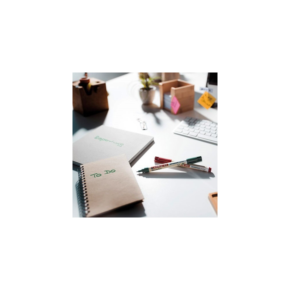 L'encre permanente garantit un marquage durable et résistant, qui tient dans le temps sans bavure ni décoloration. Comme toute la gamme Ecoline d'Edding, ces marqueurs sont fabriqués avec au moins 90 % de plastique recyclé dans leurs composants, une démarche écoresponsable clairement affichée dans leur design distinctif.