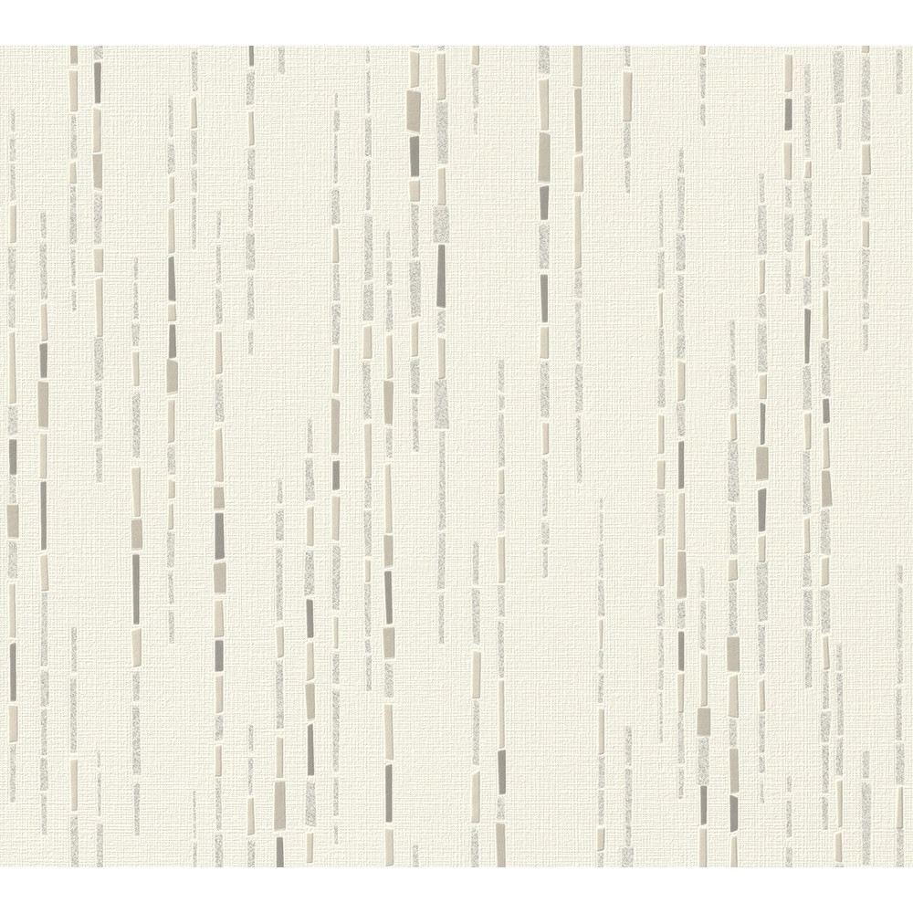 Apportez une touche de raffinement graphique à vos intérieurs avec le papier peint vinyle expansé sur intissé Decorama 3622, aux tons blanc et gris. Son design élégant met en scène des colonnes irrégulières de petits blocs géométriques en beige, gris clair et blanc, rehaussées d'un discret glitter argenté qui capte subtilement la lumière selon les angles.