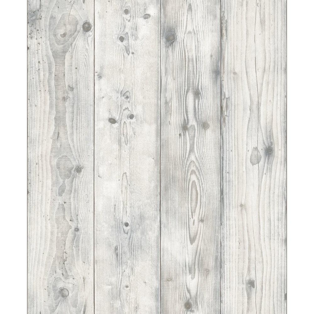 Papier peint vinyle grainé sur intissé motif planche nature gris. | Sans raccord. | Encollage direct sur le mur.