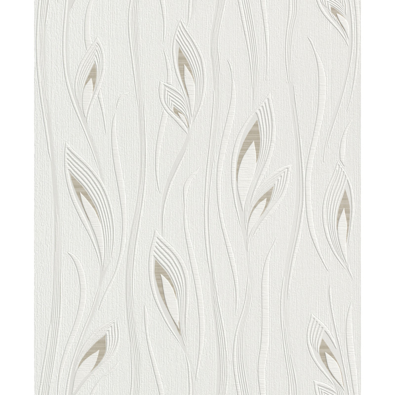 La technique du vinyle expansé sur support intissé donne à ce papier peint un relief en surface qui renforce la perception du motif floral. Le fond texturé crée une profondeur visuelle subtile, tandis que les branches et feuilles stylisées se détachent légèrement pour un effet quasi tridimensionnel. La palette beige et chanvre, composée de blancs cassés et de beiges naturels, joue sur les contrastes doux pour un résultat à la fois élégant et reposant.