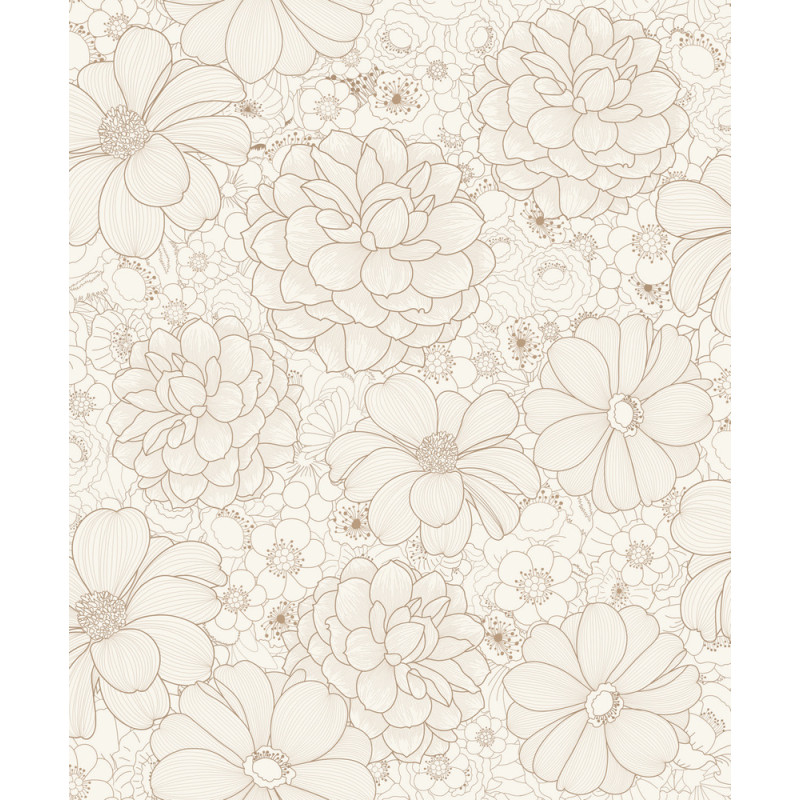 Papier Peint Vinyle grainé sur Intissé Fleur dorée. Vendu au rouleau. Pose facile. Lavable. 1005cm x 53cm.