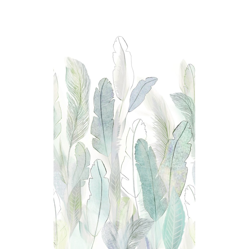Transformez un mur en véritable œuvre décorative avec le papier peint panoramique Plume Scarlet Grandeco coloris vert. Imprimé en haute définition digitale sur support intissé, ce décor grand format de 159 x 280 cm déploie un motif aérien et délicat de plumes aux nuances douces de vert, de bleu pastel et de gris, pour une atmosphère à la fois apaisante et sophistiquée.