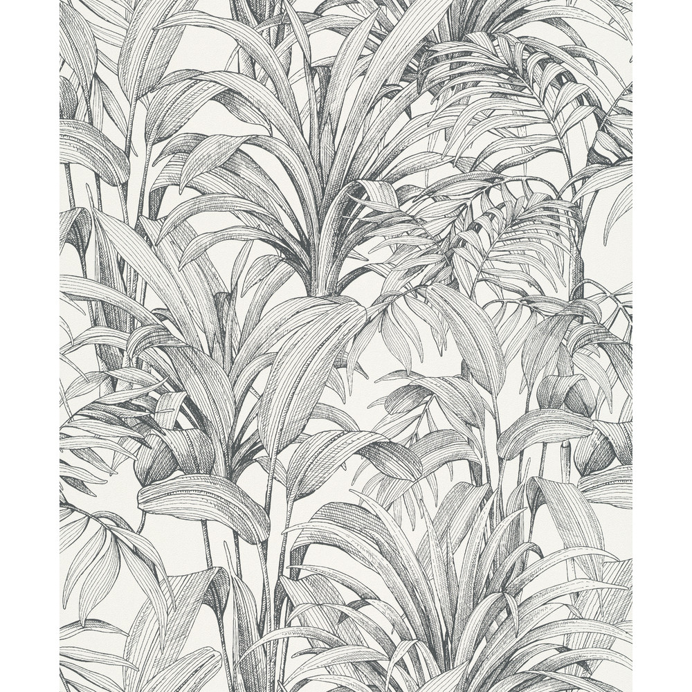 Papier vinyle grainé sur intissé motif aliaire noire et blanc. | Raccord sauté de 64cm. | Encollage direct sur le mur.