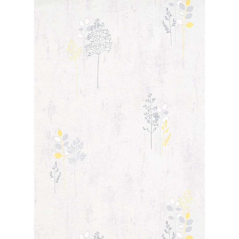 Apportez une touche de nature graphique et contemporaine à vos intérieurs avec ce papier peint vinyle expansé sur papier DECORAMA (réf. 20011-03). Son motif végétal stylisé, représentant des branches et feuilles épurées dans des tons gris et jaune pâle, sur un fond blanc légèrement texturé, crée une atmosphère fraîche et apaisante, parfaitement adaptée aux tendances déco actuelles.