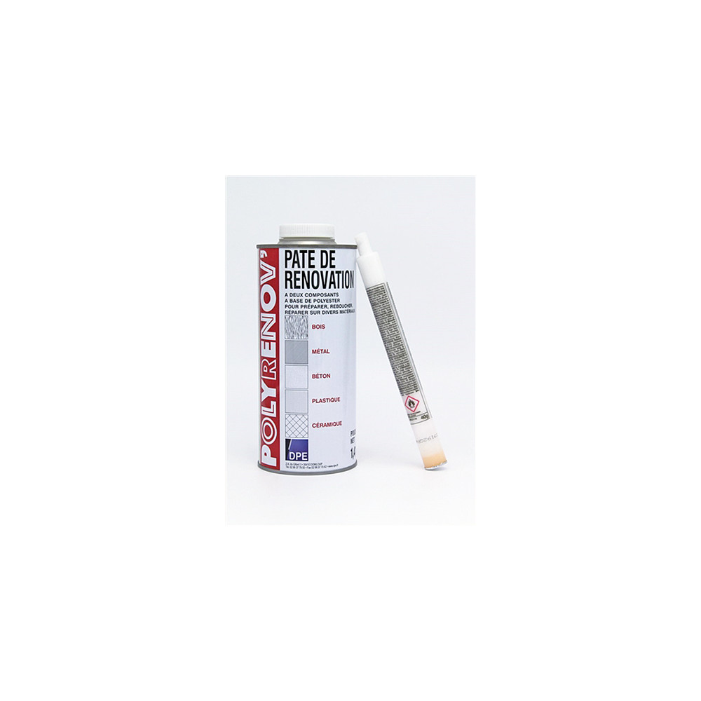 POLYRENOV Blanc est une pâte de rénovation bi-composante, à base de résine polyester à séchage rapide, caractérisée par une parfaite adhérence au support et une absence de retrait. | S'applique sur tous les matériaux tels que bois, béton, métal (éviter de recouvrir directement par une peinture ou une impression en phase aqueuse).