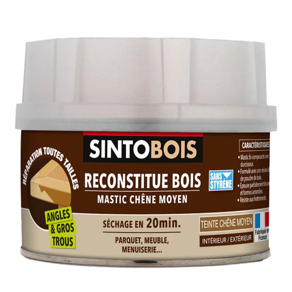 Pour réparer avec précision les petites et moyennes dégradations sur vos bois à tons bruns et chauds, le mastic bois chêne SINTO en pot de 190 g est le format parfaitement adapté. Sa teinte chêne classique se marie naturellement avec les essences les plus répandues dans nos intérieurs et nos menuiseries.